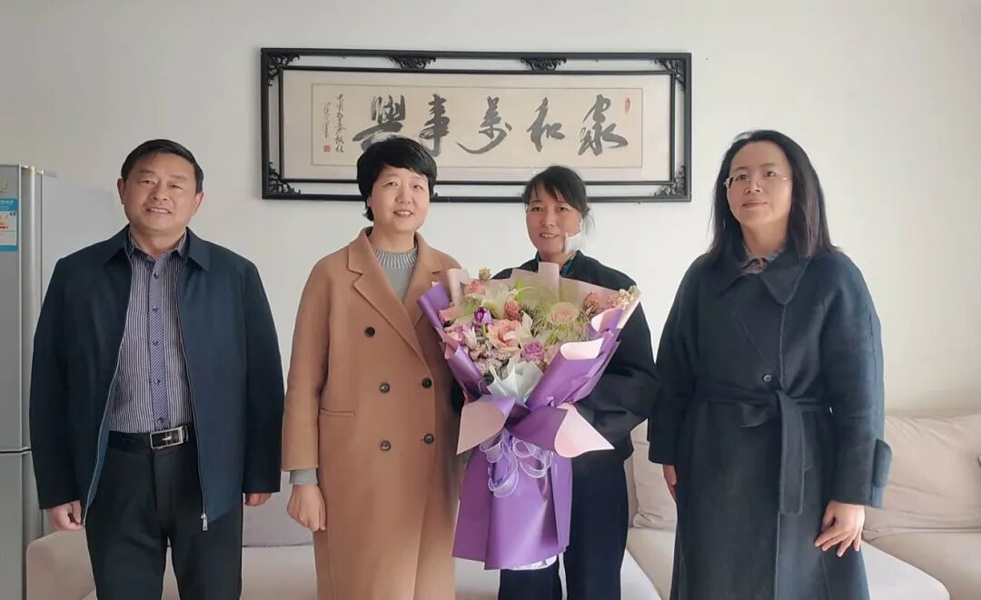 漯河市妇联主席王静(左二)看望慰问王妙丽(右二)